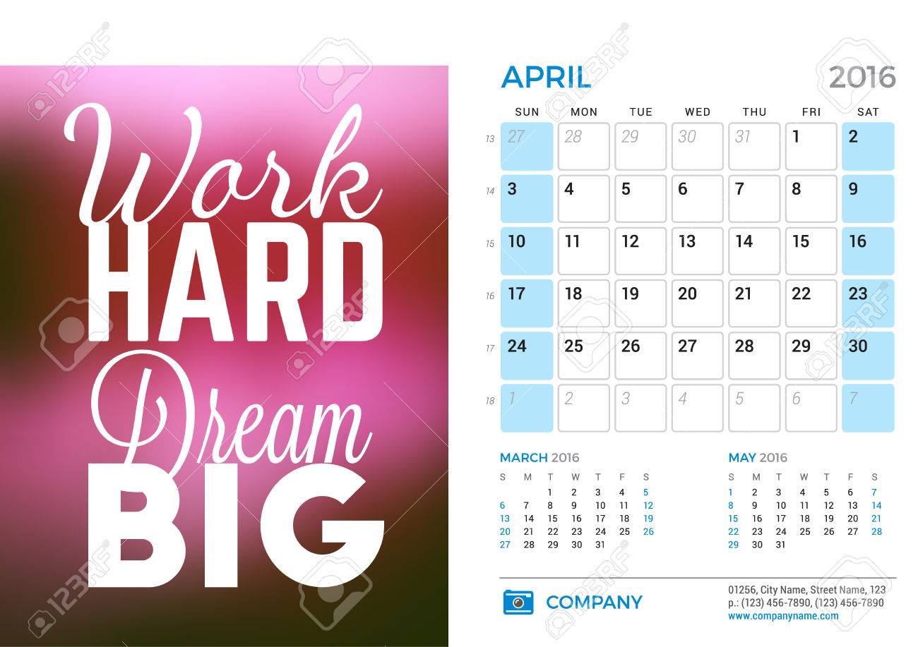 Calendrier De Bureau Pour Citations Annee Avril Vector Stationery